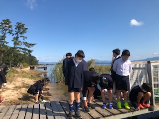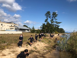 宿舎の前の浜で自然観察をしながら楽しんでいます。