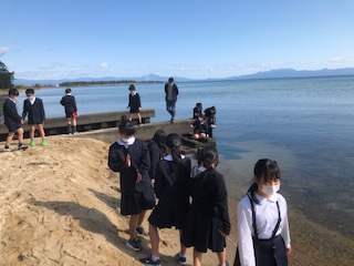 琵琶湖の自然の中で楽しんでいます。