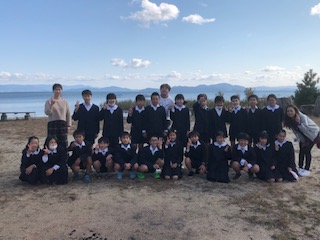 最後の集合写真は、琵琶湖をバックに撮りました。