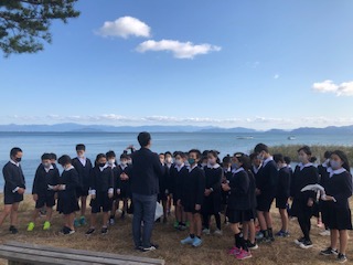 琵琶湖での自由時間が終わりました。この後、準備を整え荷物を持って、バスに乗車します。