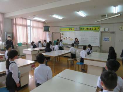 2年生では例年食育とも合わせて、学習園で栽培し収穫したサツマイモを調理する学習をしていました。