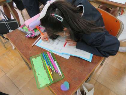 今日は、一泊二日の林間学習の新聞作りに取り組んでいました。