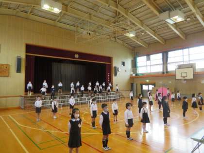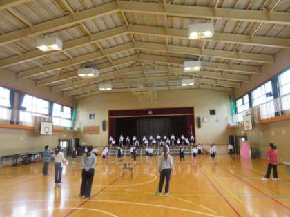 今日は、講堂で発表の練習をしていました。