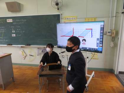 今日は、平行四辺形の面積の求め方についていろいろな意見を出し合いながら学習を進めていました。