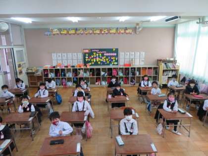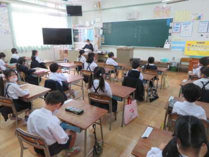 顔を直接見ながら話すことができませんが、子どもたちは教室のスピーカーを見ながら話を聴いていました。