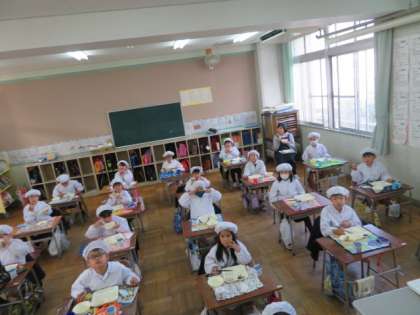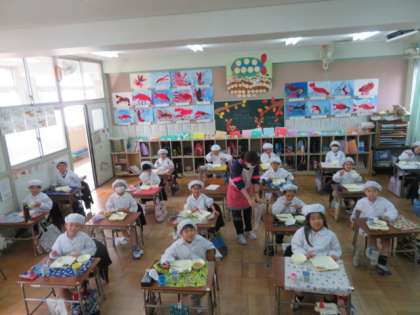 聴いていた子どもたちは、給食をしっかりといただきながら心を弾ませているようたでした。