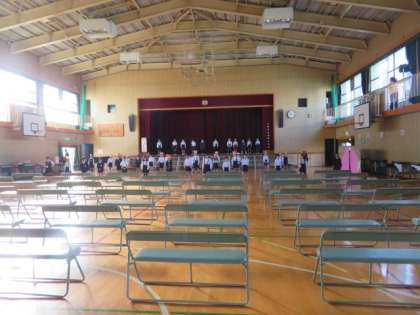 群読の場面では、しっかりとした声を出すように頑張っていました。