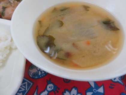 今日の給食では、みそ汁の実として使用されています。秋の味覚を楽しみながらとてもおいしくいただきました。