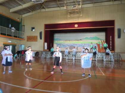 それぞれの場面で、入れ替わりながら4年生全員で劇を作り上げていました。