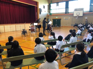 今日は、低・高学年に分けて音楽鑑賞会を行いました。