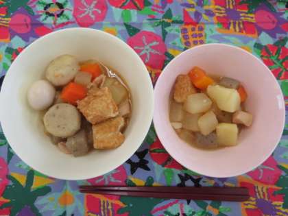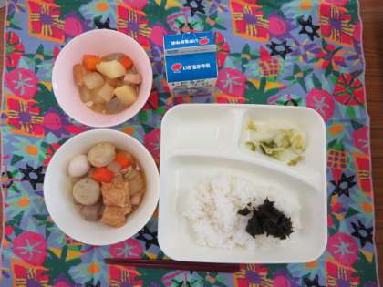 献立は、関東煮、はくさいの甘酢あえ、のりのつくだ煮、ごはん、牛乳でした。