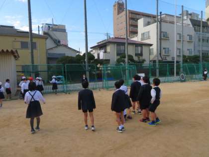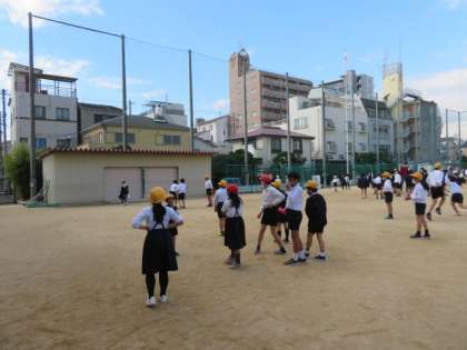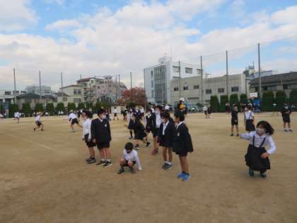 「だるまさんがころんだ」を2学級の子どもたちが、それぞれにみんな遊びとして楽しんでいました。
