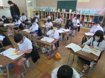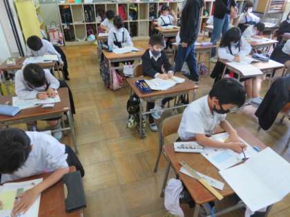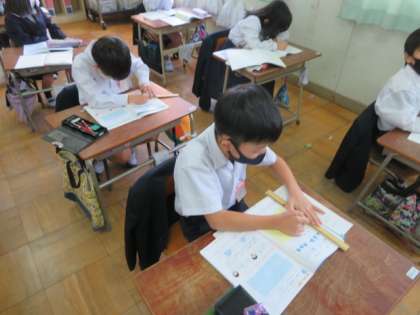 定規を上手に使って点と点を結び、三角形や四角形を正確に作図しようと努めていました。