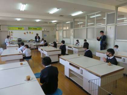 なかよし学級で栽培し収穫したサツマイモを栄養教諭がスイートポテトに調理してくれました。