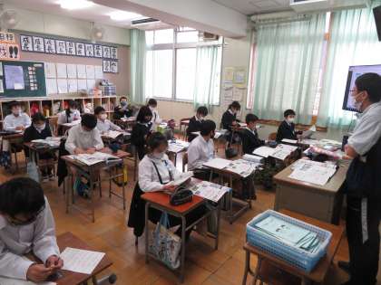 1組では、日本の機会工業の基幹となってきた自動車について学んでいました。