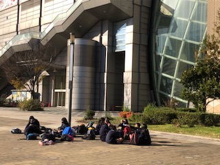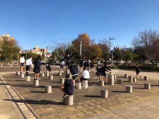 見学を終えて、外の公園で遊んだり、全員が見学を終えるまで待ってあまりしています。