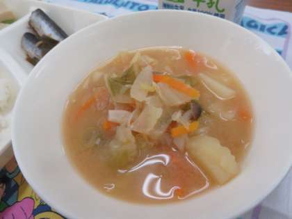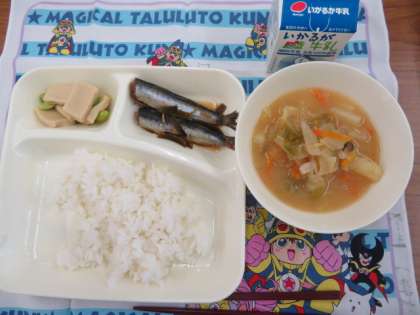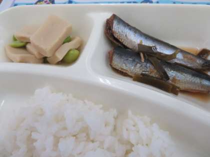 献立は、いわしの生姜煮、みそ汁、高野豆腐の煮物、ごはん、牛乳でした。