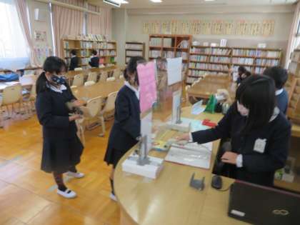 図書委員会児童が、図書の返却・貸し出し受付をしていました。