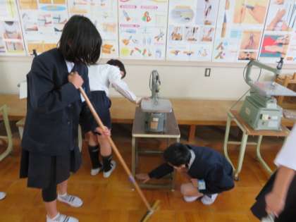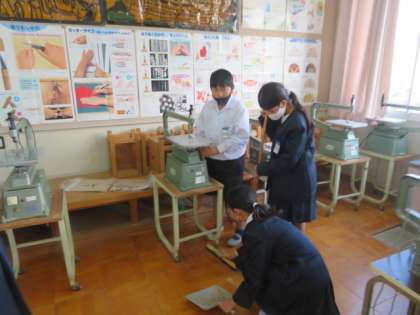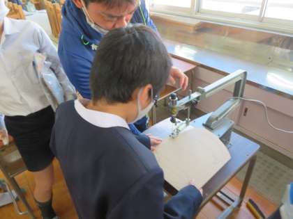 図工室で、電動ノコギリを使って、安全に気をつけながら木を切る活動をしていました。