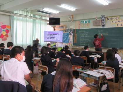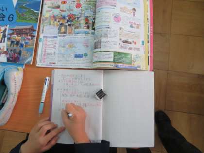ペリー来航と倒幕運動への流れについて、ていねいにノートにまとめながらしっかりと学習をしていました。