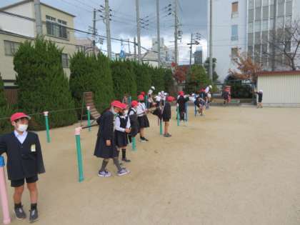 各学年、学級でボールや固定施設を使ったりして、それぞれに運動遊びを楽しんでいました。