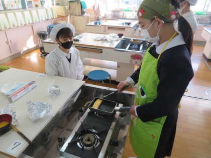 これまでの調理経験等で個人差はありましたが、静かに助言し合うなどしてみんな上手に玉子焼きを調理していました。