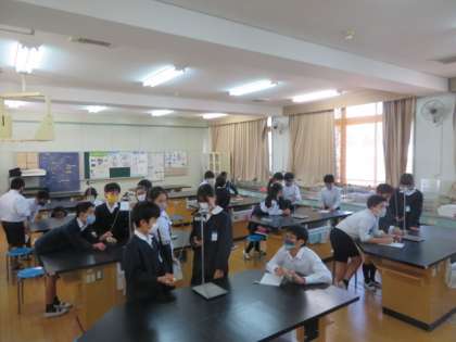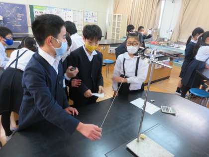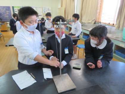 前回の続きで、振り子の周期について理科室で実験をしていました。