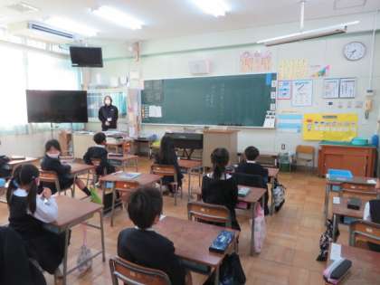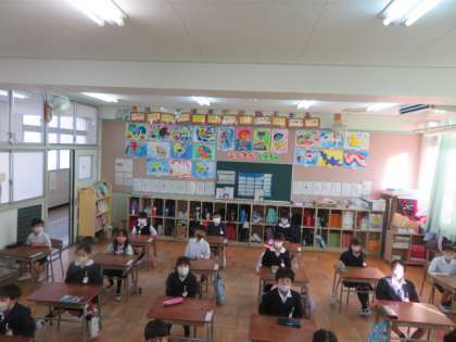 2学期最後の児童朝会でしたが、今朝の児童朝会も職員室からの放送で行いました。