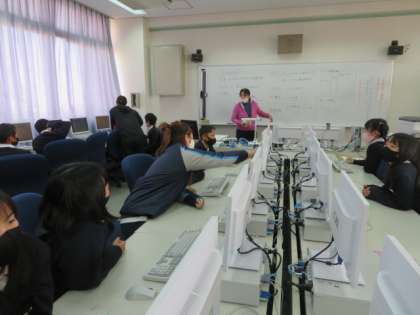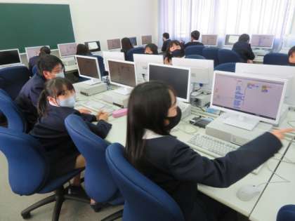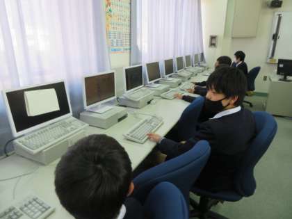 パソコンルームで各自一台ずつのパソコンを使いながら、条件を順にプログラミングしていくといろいろな図形ができあがります。