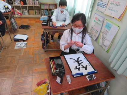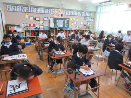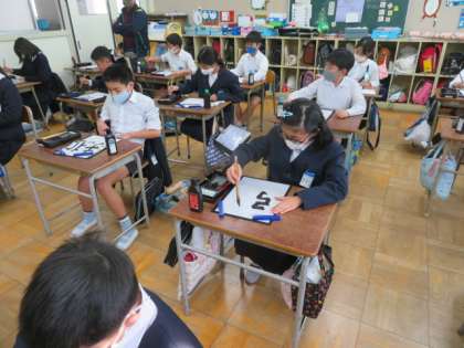 各自が思い浮かぶ今年の漢字を筆で書いていました。