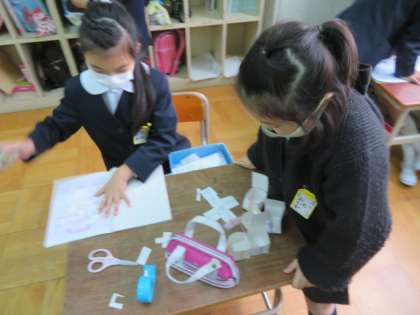 明日に行う予定のクリスマス会(お楽しみ会)の準備に精を出していました。