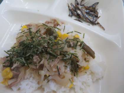 今日は特別献立「正月の行事献立」で、レンコンのちらし寿司、雑煮、ごまめ、牛乳でした。とてもおいしくいただきました。