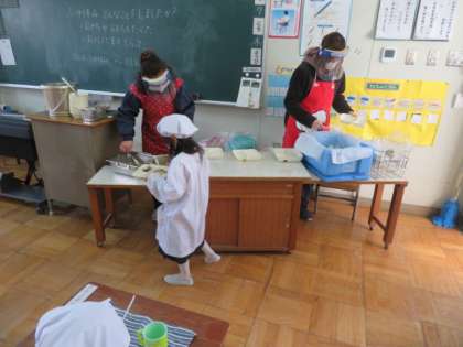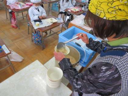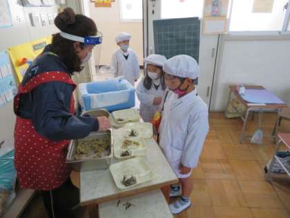 蜜になることを避けて、それぞれにルールを作って各自が給食を取りに来ています。