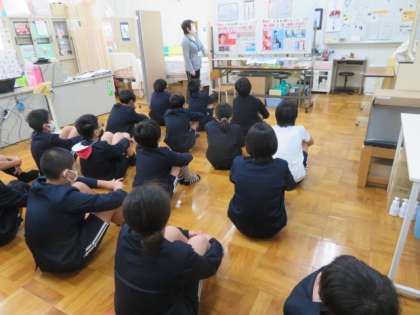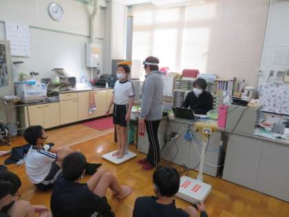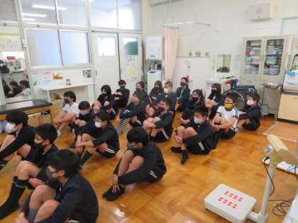 測定の前に養護教諭から、姿勢の大切さ、飛沫感染についての保健指導がありました。
