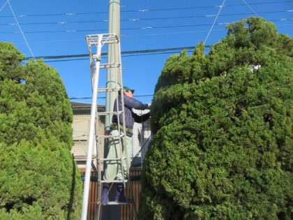 管理作業員グループの方に樹木の剪定作業を昨日からしていただいてます。