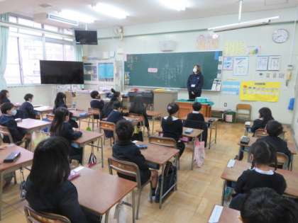代表委員会からのお知らせとして、代表委員会児童が職員室からの放送で全校児童に呼びかけました。