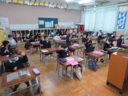 一年生の子どもたちも、放送をよく聴いてしっかりとしたあいさつをしていました。