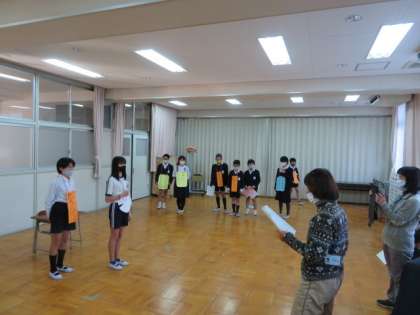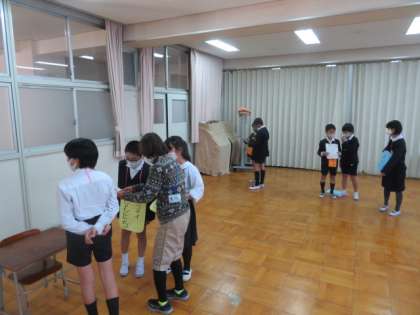 給食委員会は、本校の給食週間に全学年に食の大切さや食品ロスの問題について伝えようと創作した劇のビデオ撮りをしていました。