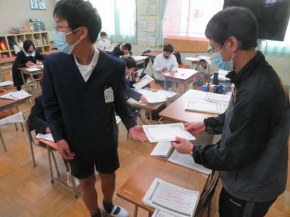 運動委員会は、2学期の運動週間で行った業間なわとび等でよく努力した人への賞状作りをしていました。