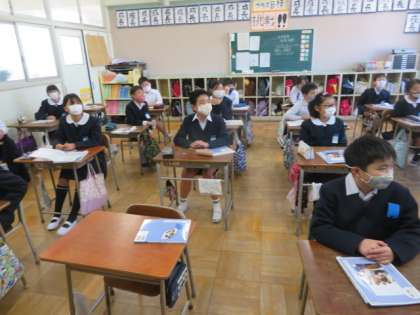 5年1組では、2時間目の道徳の時間を使って「いじめについて考える日」の取り組みを行っていました。