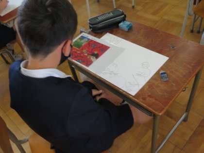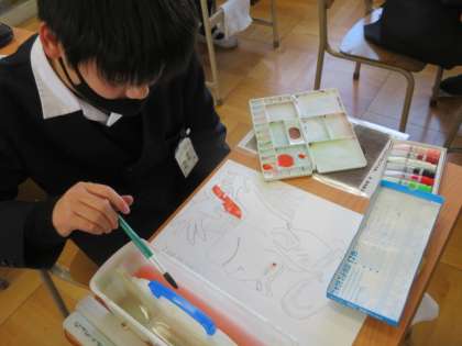形をしっかりとった後、ていねいに彩色するのが難しいようでしたが、各自それぞれに頑張っていました。