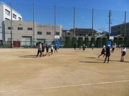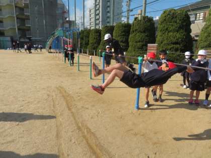 気温は低くても、晴れていたら子どもたちは運動場へ出て、運動遊びにチャレンジしています。