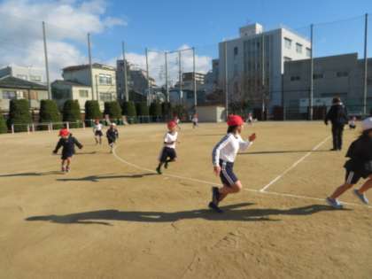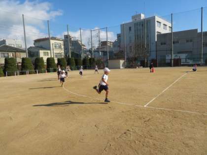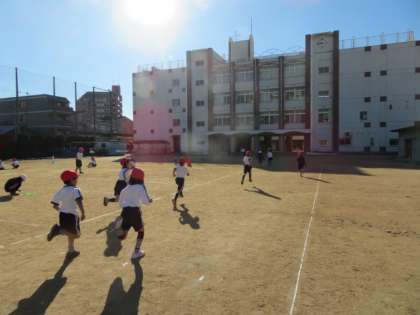 準備運動として徒手体操の次に子どもたちが、走っています。