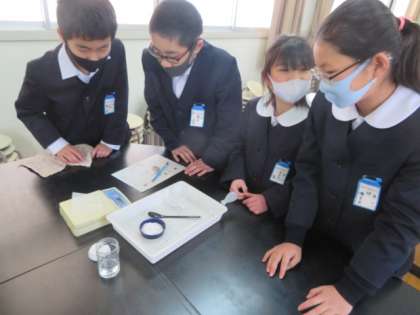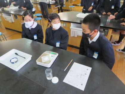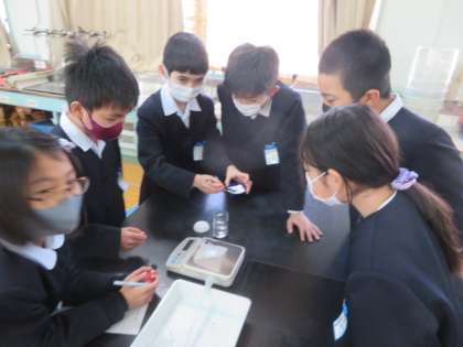 「水に溶けたものの重さは、どうなるのだろうか」というテーマで、実験観察をしていました。