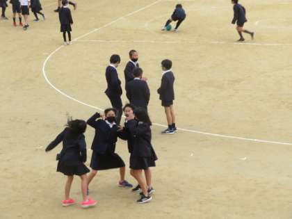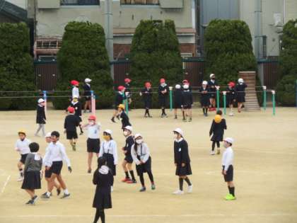 子どもたちは、雪がちらつく中でも嬉々として運動場へ出て遊んでいました。