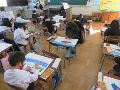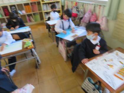 1/19 火 5時間目 1年2組 国語・図画工作