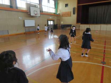 まずは、一人ひとつずつ羽子板と羽根をもって、何回連続でつけるかチャレンジしていました。