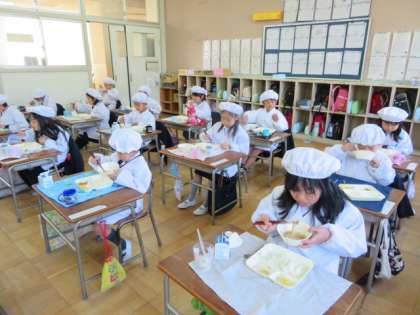 1年2組の子どもたちも、新型コロナウイルス感染予防に努めながらしっかりと残さずに給食を食べていました。