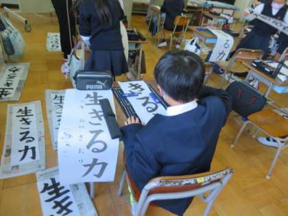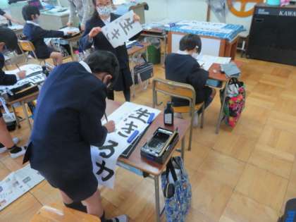 今年度は、コロナ禍で席書会という形ではなく、各学級ごとに行います。