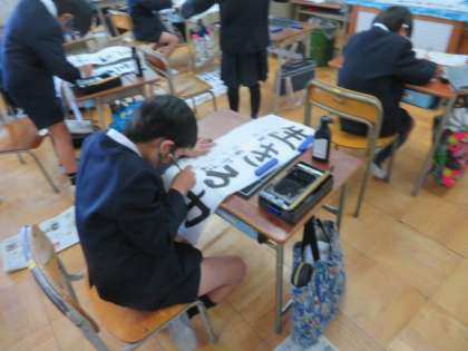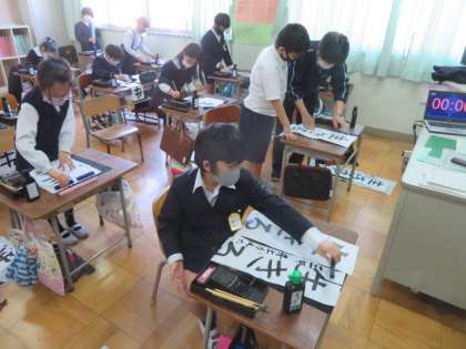 子どもたちは、書いた中から一枚を選んでていねいに名前を書いていました。